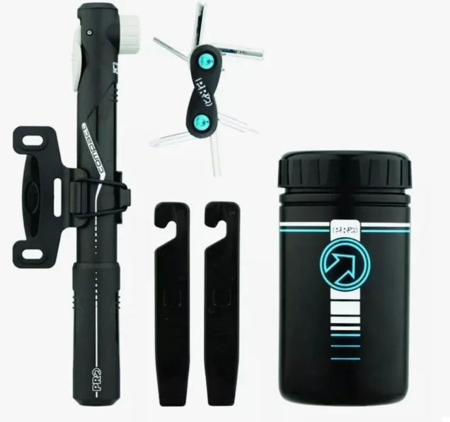 El PRO Lit Combi-Pack es un kit compacto y liviano diseñado para llevar las herramientas esenciales de reparación directamente en la bicicleta, sin necesidad de bolsa adicional. Integra una multiherramienta, desmontables y un sistema de almacenamiento en un formato inteligente que se monta debajo del asiento PRO compatible.