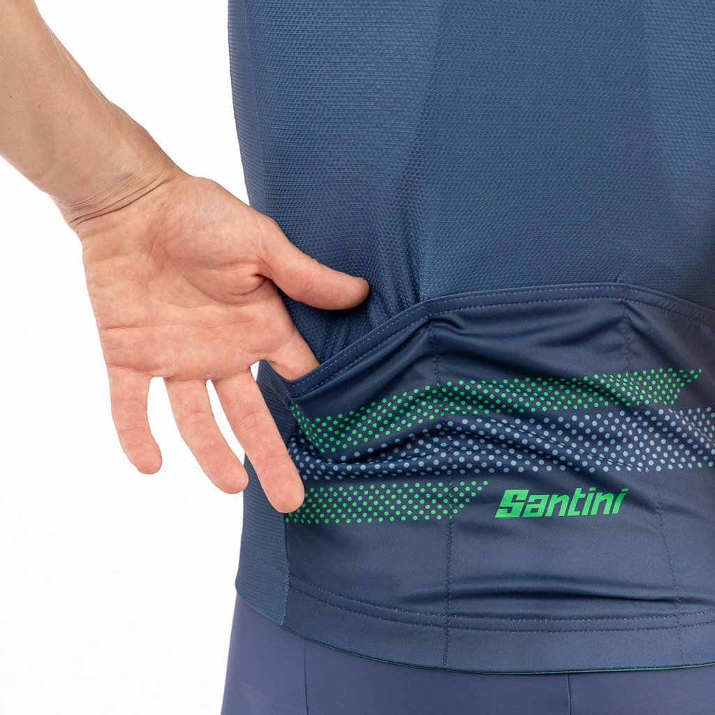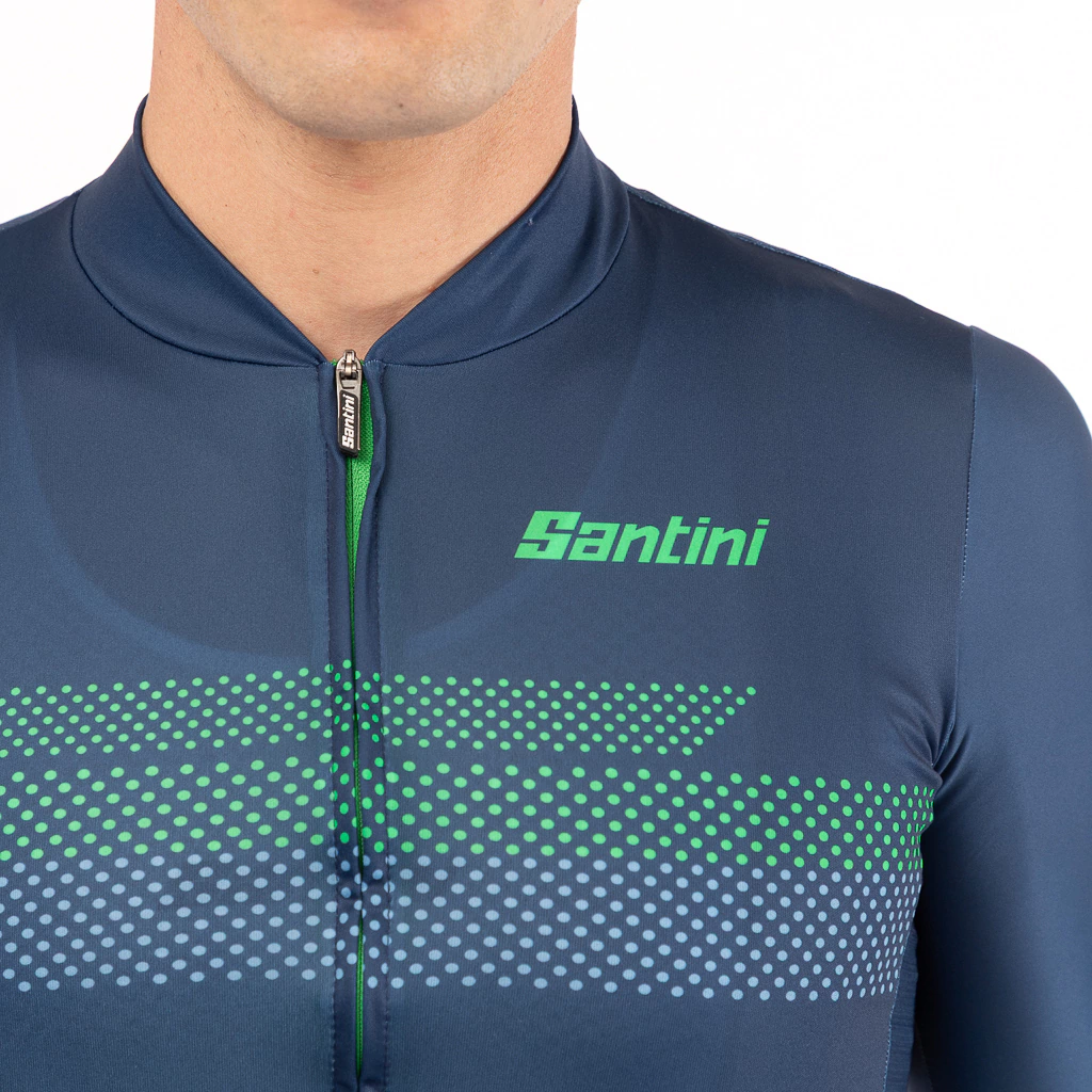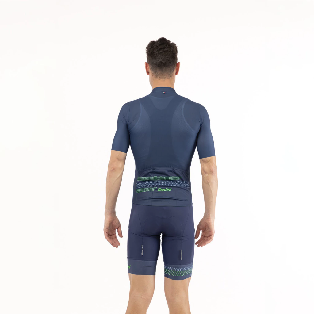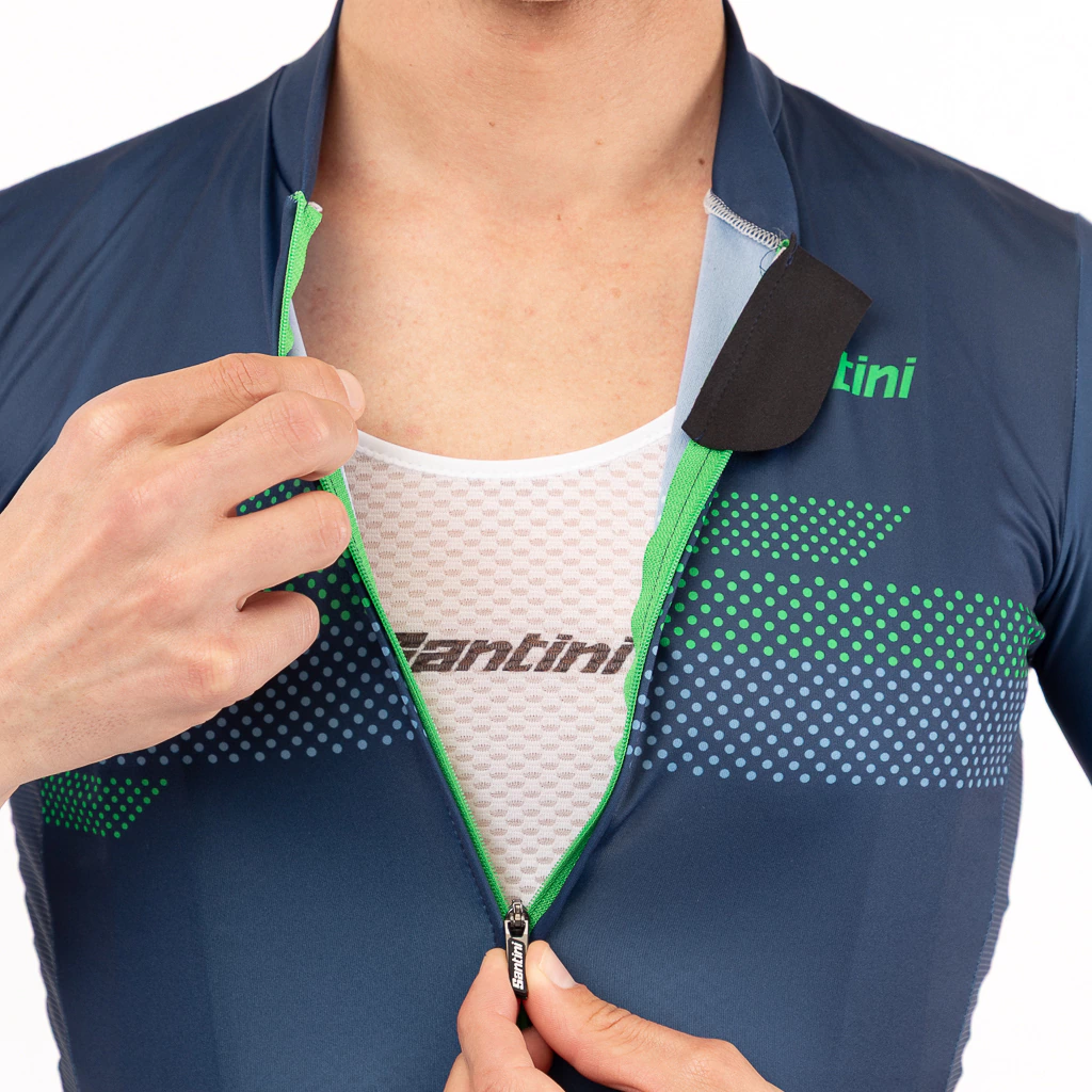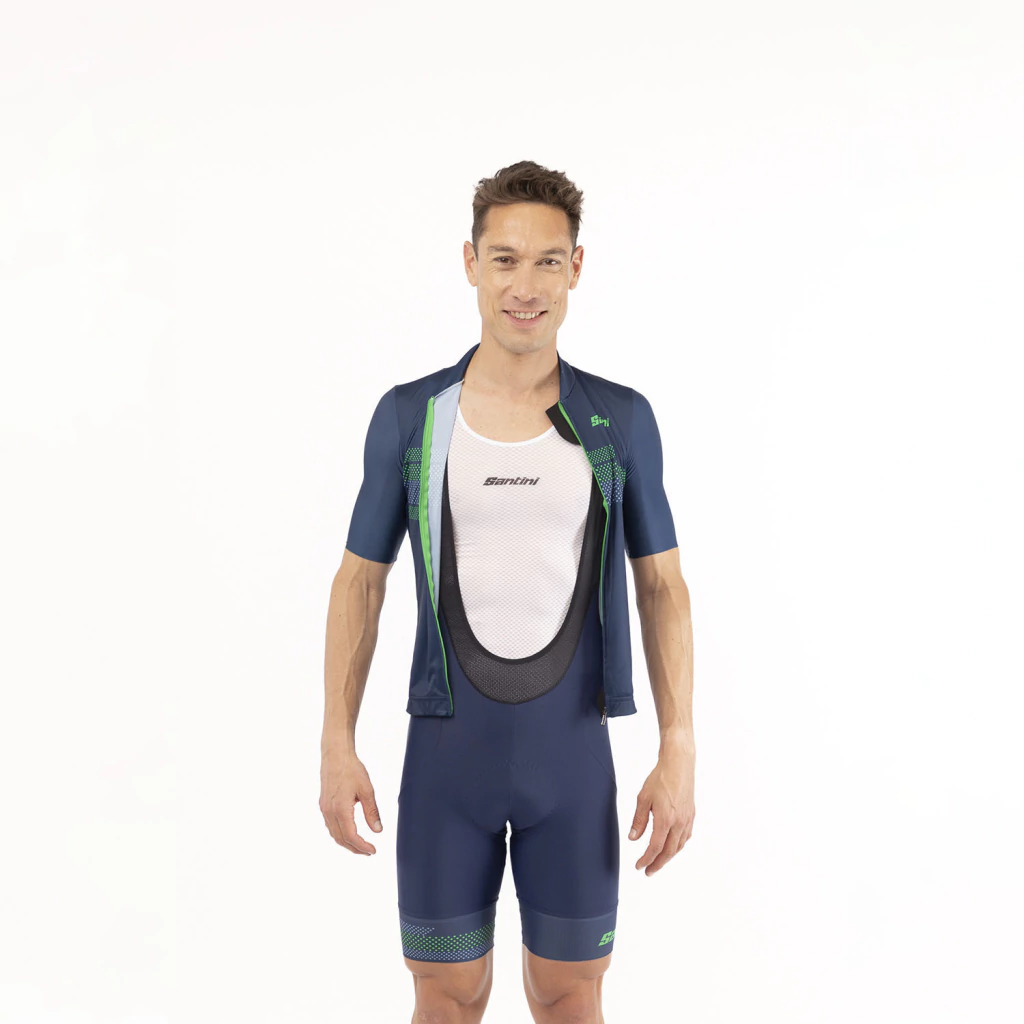 Calce Slim ajustado al cuerpo. Se mantiene pegado al mismo minimizando la resistencia al viento sentado en el sillín. Este es el calce que define a Santini. Increíblemente versátil, ofrece un perfil elegante manteniendo una comodidad excepcional durante todo el recorrido.